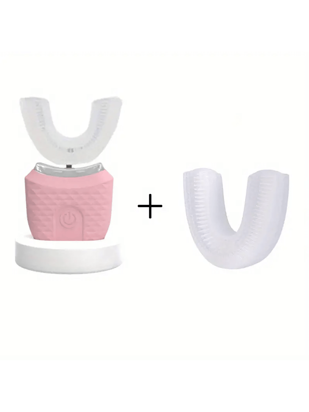 Elevate your oral care routine with our 1pc Adult Electric Toothbrush, designed for comprehensive 360° whole mouth cleaning. Embrace the future of dental hygiene with this U-shaped smart toothbrush in a chic pink hue. The rechargeable power supply ensures sustainable use, and the included batteries make it ready for action right out of the box. Crafted from gentle silicone, this toothbrush guarantees a comfortable brushing experience. The CE certification of the charger underscores our commitment to quality and safety. Simplify your dental care with the convenience of the charging base and easily replaceable brush head. Upgrade your daily routine with an intelligent approach to oral health – embrace the power of our Adult Electric Toothbrush for a radiant smile and a confident you.