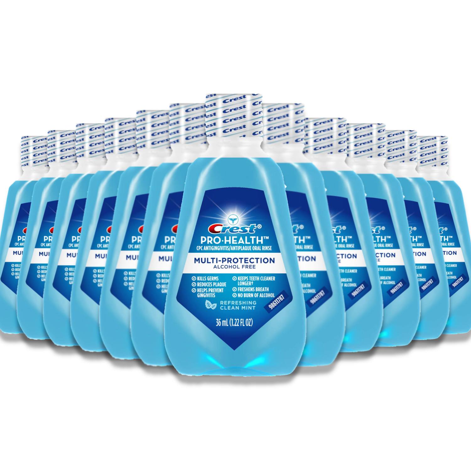 Keep your breath fresh and your mouth healthy with Crest Pro-Health Alcohol-Free Mouthwash. This convenient 48-pack of 1.2 oz bottles is perfect for on-the-go use, offering multi-protection clean mint freshness without the burn of alcohol. Maintain your oral hygiene routine wherever you are with Crest Pro-Health Mouthwash.