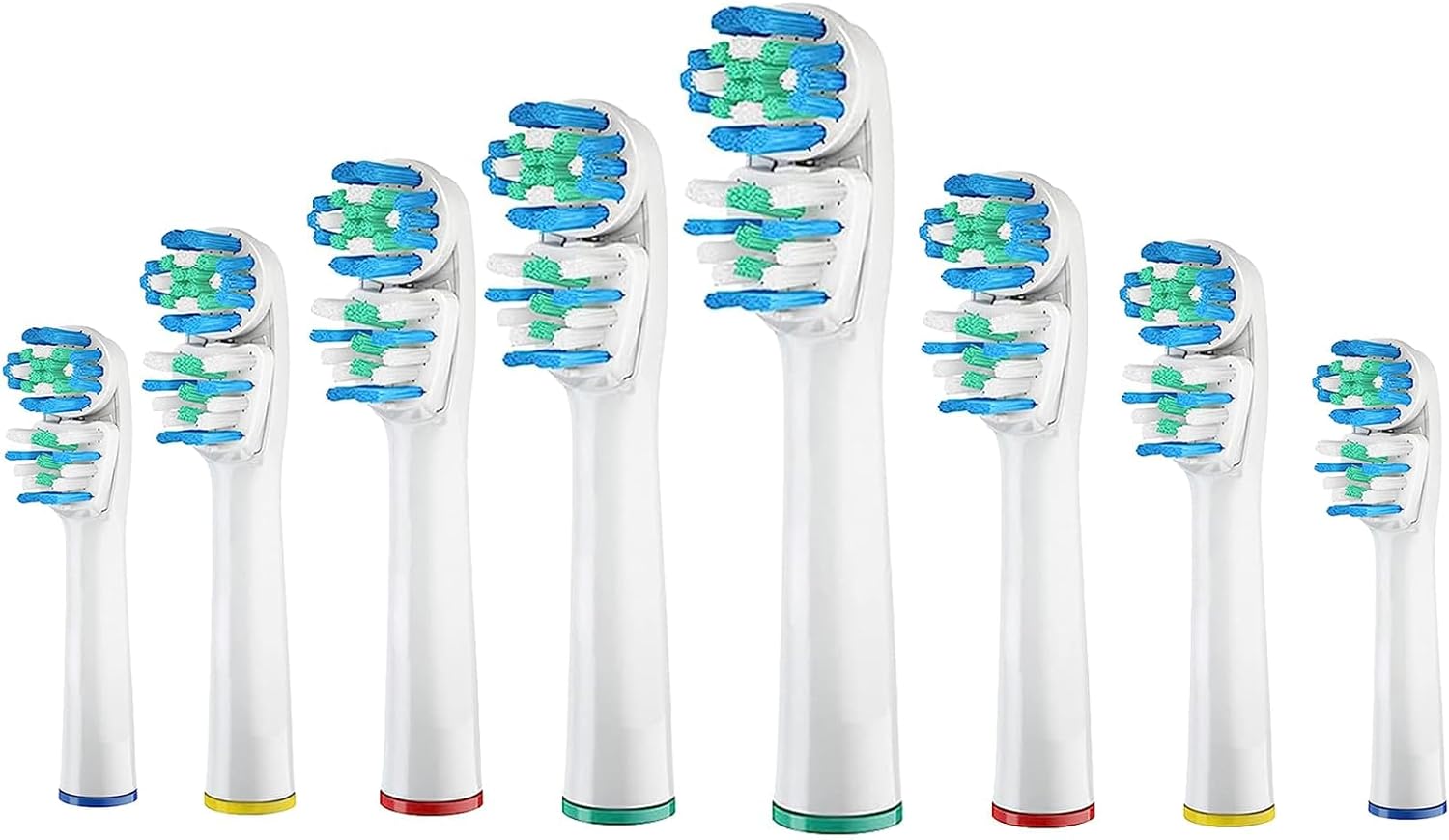 【Ideal for the Whole Family】Different colored rings located at the bottom of the brush heads (red, yellow, blue, green) make it effortless to share among family members. Each family member can easily identify their own toothbrush head.