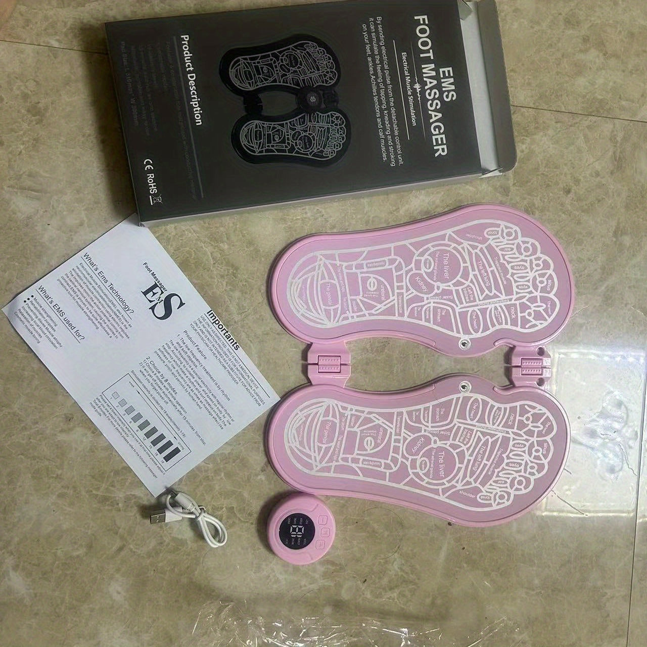 EMS Foot Massager Pad Reflexology Foot Acupoint Massage Muscle Stimulation Improve Blood Circulation Relief Pain USB Rechargeable