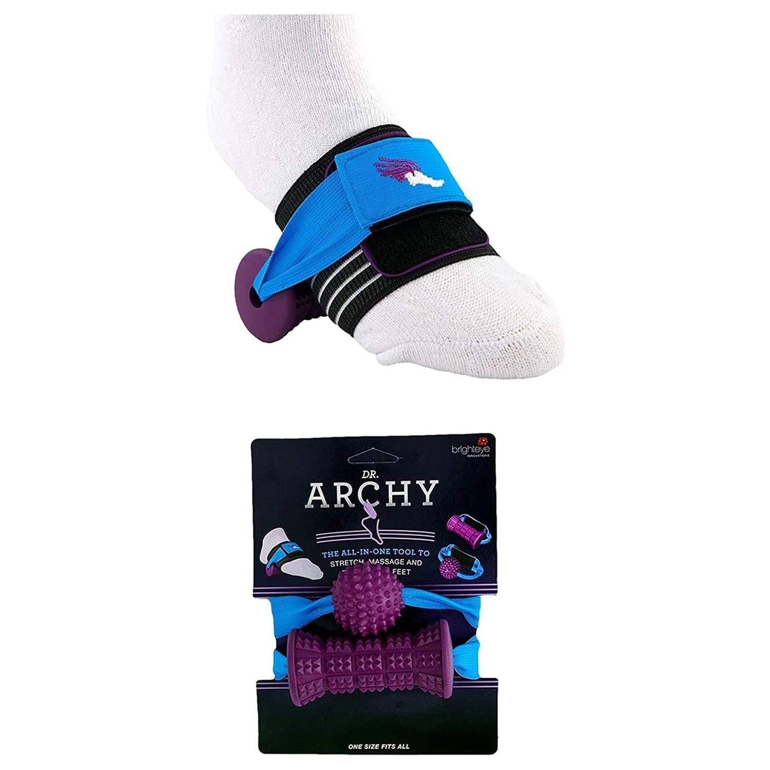 Oh, the relief you feel when those tight muscles get massaged and relaxed, returning them back to their wonderful limber state. The muscles in your feet are no different! Fallen arches /arch pain, flat feet, plantar fasciitis, heel spurs/pain, tired feet—those hardworking muscles get exhausted, tight, and need some good old-fashioned relaxing massage therapy to keep you on your feet. Dr. Achy’s foot massagers are designed to be your one-stop, go-anywhere feet massagers. This package includes a textured roller bar for broad arch stretching and a textured rollerball for concentrated pain relief in a targeted area. These dual massage rollers act as a heel spur massager, massager for plantar fasciitis, and fallen arch/flat foot revitalizer. No muscle stands alone, so these well-designed foot massager rollers were created with your muscle anatomy in mind. It targets 3 major muscles supports in the soles of your feet as well as works the extrinsic and intrinsic (outer and inner) muscles of your lower leg and foot. This helps stretch the plantar fascia in order to increase flexibility and relieve pain due to a number of muscle-related foot issues, including spurs and tired feet. Compact and easy to pack, this duo is ready to travel with you to make sure your feet stay limber, well-stretched and feeling fine any time you need.