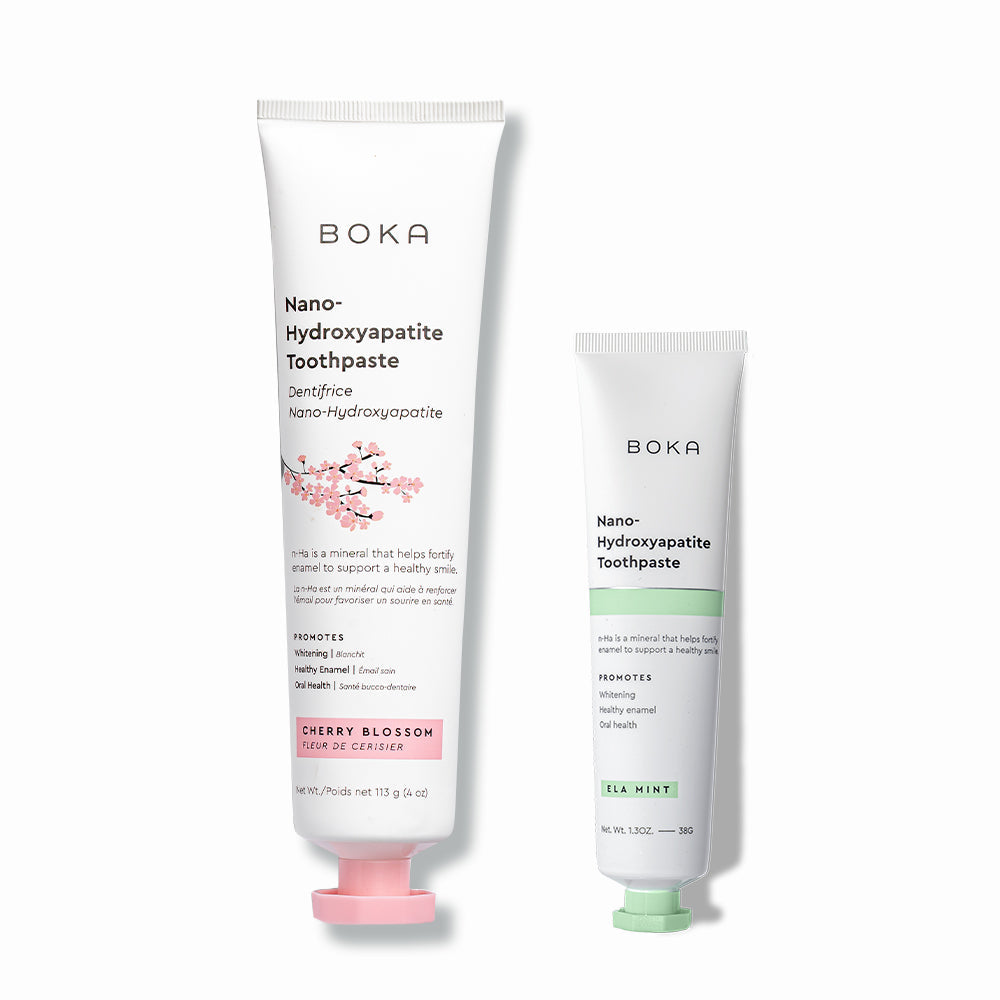 One for every day — and one for vacay. This power-packed duo trades fluoride for nano-hydroxyapatite (n-Ha) to remineralize and fortify teeth with every brush. It freshens breath, whitens teeth, and even helps close holes on enamel that can cause tooth sensitivity. One is sized for your bathroom cabinet, while the other is perfect for life on the move.