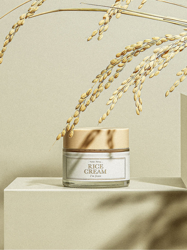 I'm From Rice Cream is formulated with rice bran extract, which contains ceramides that have been distilled and specially treated to help strengthen the skin barrier. Ceramides form a protective layer that shields from sun damage and helps retain moisture. Rice also balances oil production and absorbs sebum, helping keep pores clear.