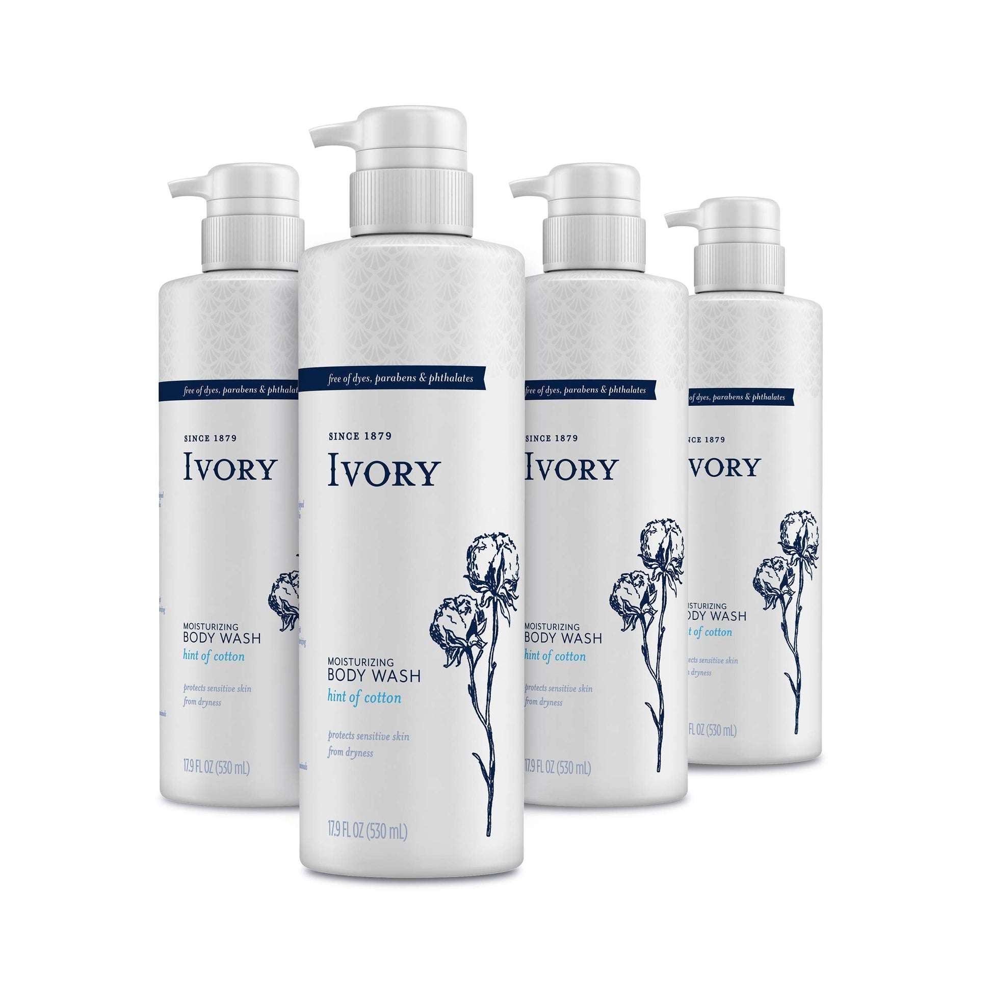 Ivory Sensitive Skin Moisturizing Body Wash, Hint of Cotton, 17.9 Fl Oz (Pack of 4)