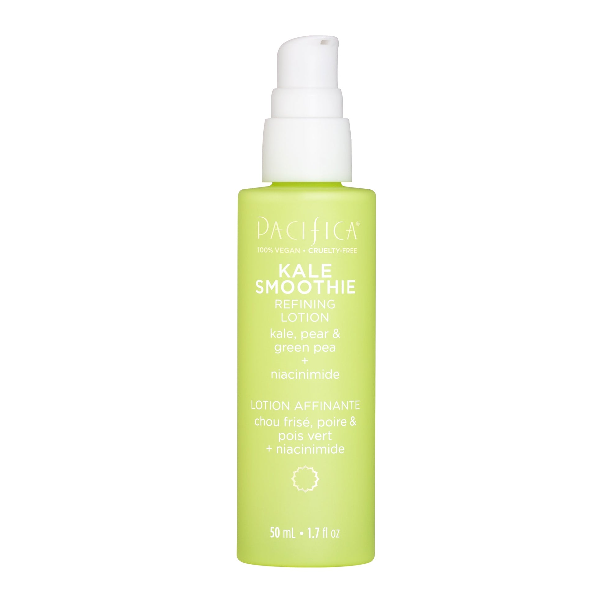 Our Kale Smoothie Refining Lotion is a gel-like light fluid – consider it a smoothie for your face. Packed with copper, niacinamide and a supergreen line-up of nutrient rich kale, aloe and green pea plus vitamins C and E. Designed to fight redness, minimize the appearance of large pores and improve skin texture and tone.